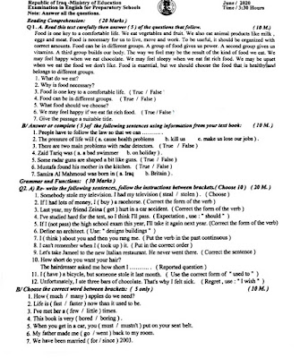 اسئلة الانكليزي السادس الاعدادي 2020 الدور الاول ملازمنا