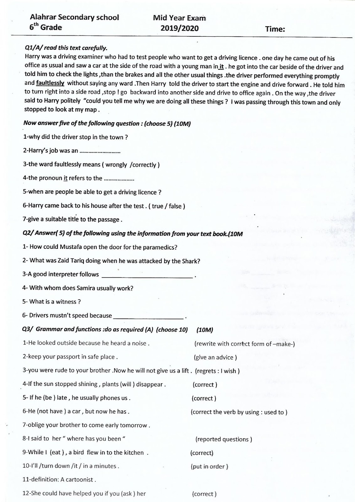 اجوبة اسئلة اللغة الانكليزية للصف السادس الاحيائي الدور الاول 2020