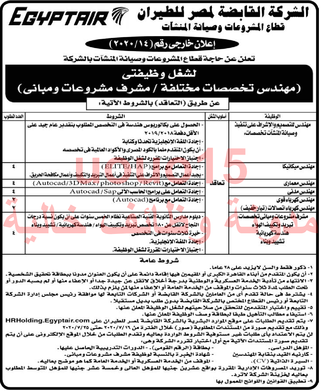 اعلان وظائف الشركة القابضة لمصر للطيران للمؤهلات العليا والدبلومات منشور 10 7 2020
