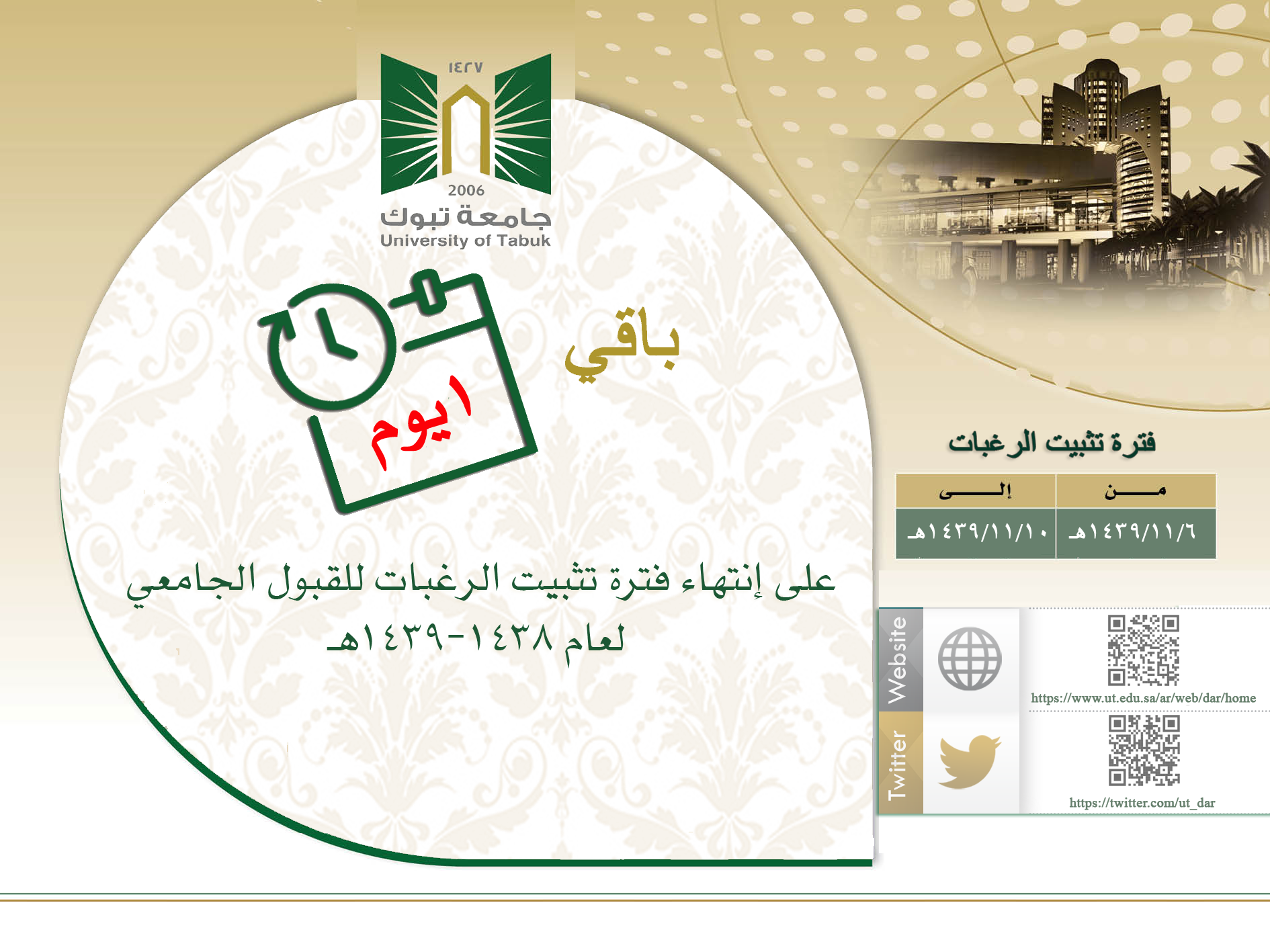 جامعة تبوك A Twitter التقويم الجامعي للفصل الدراسي ١٤٣٧ ١٤٣٨ القبول والتسجيل بجامعة تبوك 1438