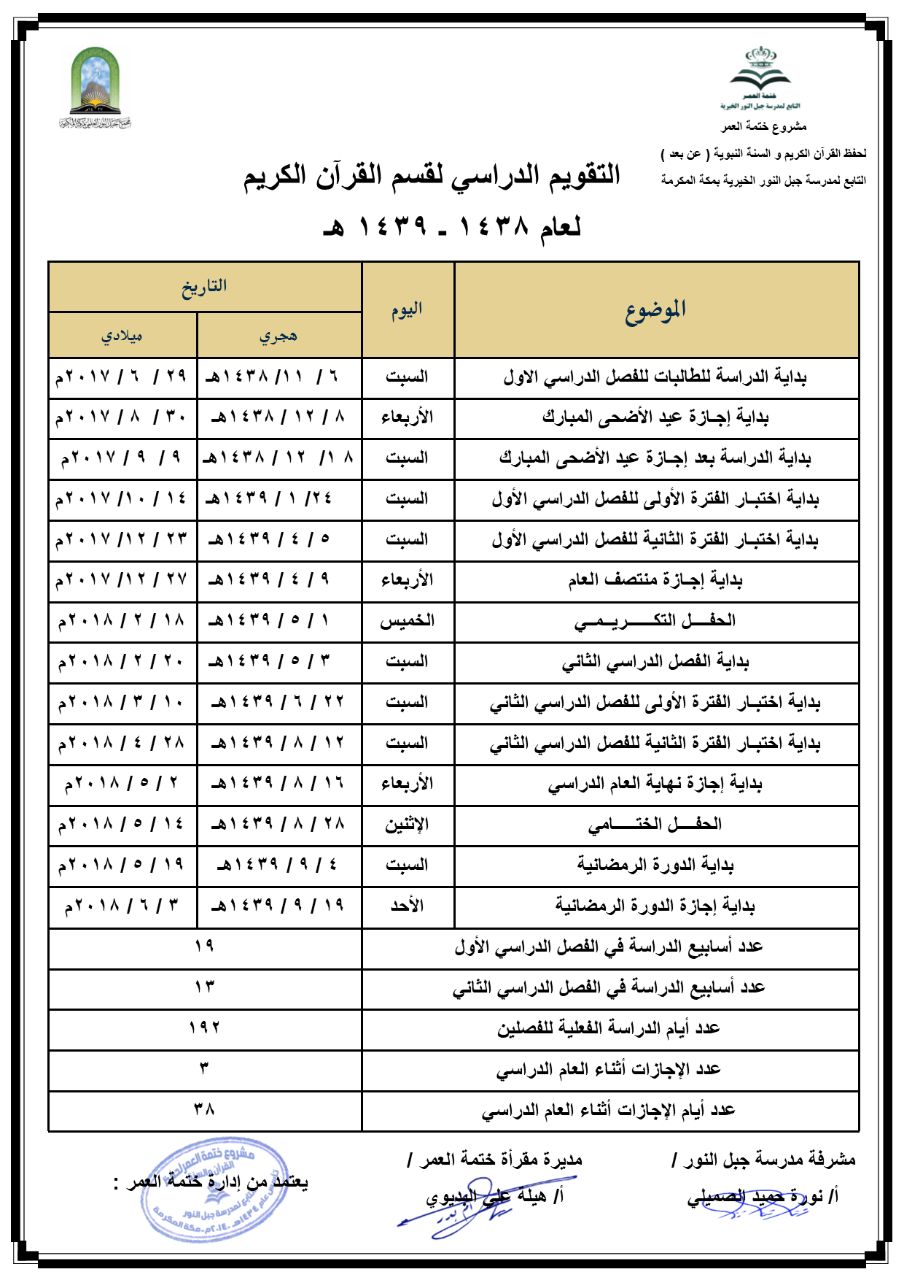 التقويم الدراسي لعام 1437 1438 هـ جمعية تحفيظ القرآن الكريم بمحافظة المجمعة