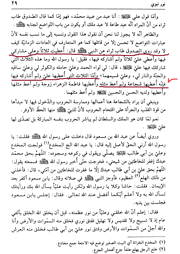 علي عند الشيعه اشجع من النبي يقول شيخ الشيعة نعمة الله الجزائري النبي عليه الصلاة والسلام قال عن علي انه أعطي شجاعة ولم أعط مثلها بكتاب الأنوار النعمانية ج1ص29 وثيقة