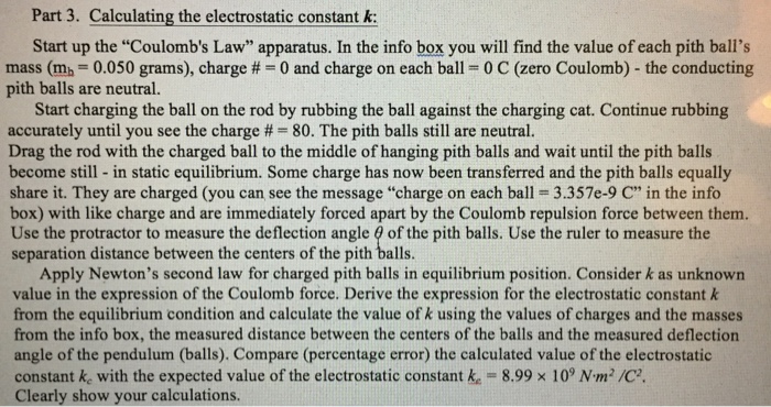 Solved Part 3 Calculating The Electrostatic Constant K Chegg Com